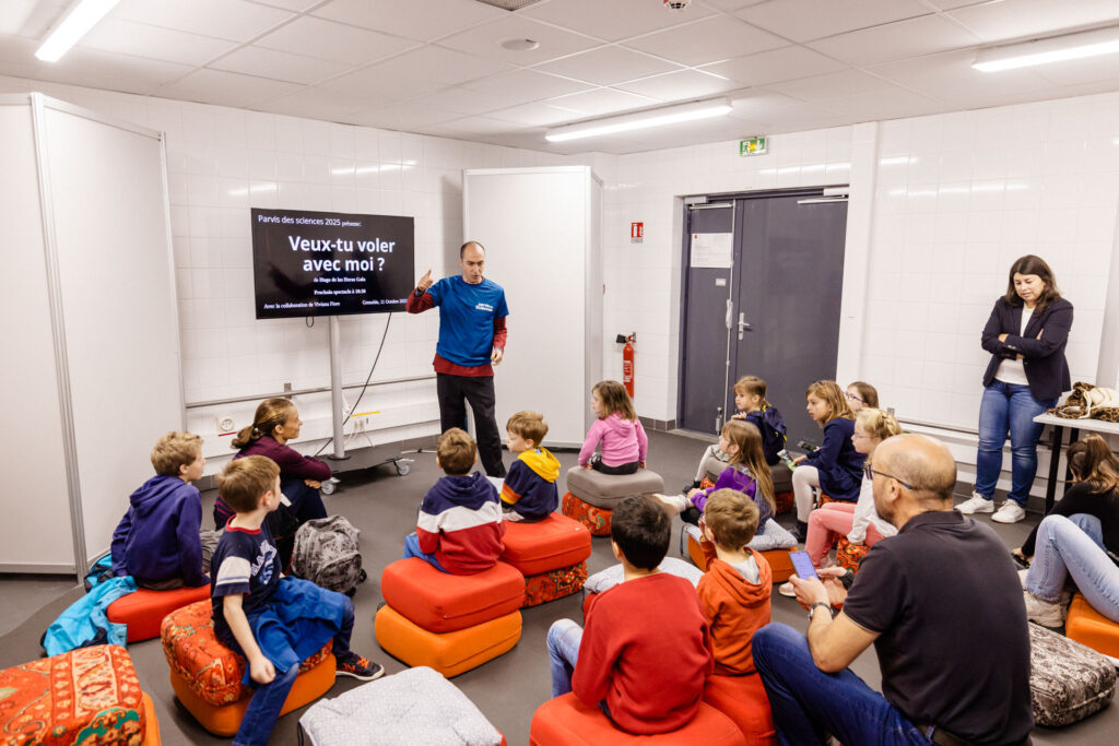 L’auteur, comédien et physicien, raconte l’histoire de Noa dans un conte de fées magique-réaliste à l’aide d’images fantastiques. Adultes et enfants ont été impliqués dans l’histoire pour créer une expérience unique à chaque séance ! Ce sont en tout cinq séances qui ont été proposées dans la programmation du samedi 11 octobre 2025 lors de la journée portes ouvertes du Parvis des sciences.